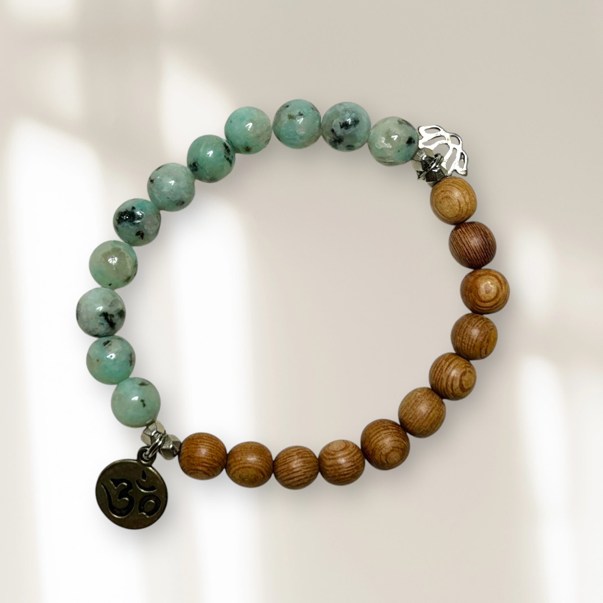 Grounding and stability: natural wood symbolizes quiet strength and a connection to the Earth. It invites us to slow down, breathe deeply, and refocus on what truly matters. Together, these materials create a balance between gentleness and inner strength.
