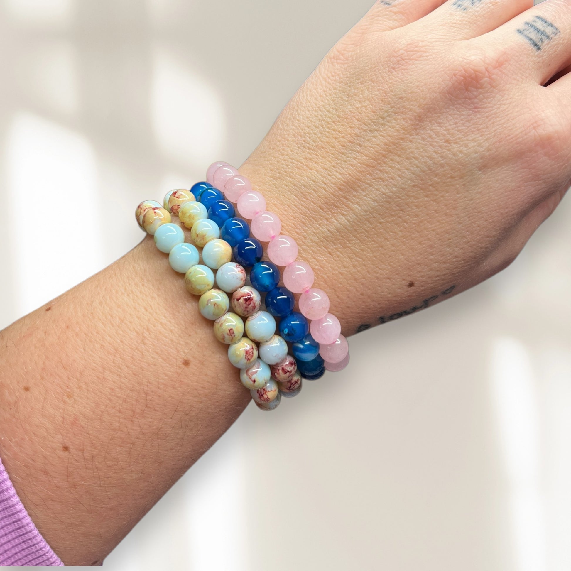 Un bracelet d'expression et de confiance, unique aux teintes apaisantes, mêlant équilibre et vitalité.