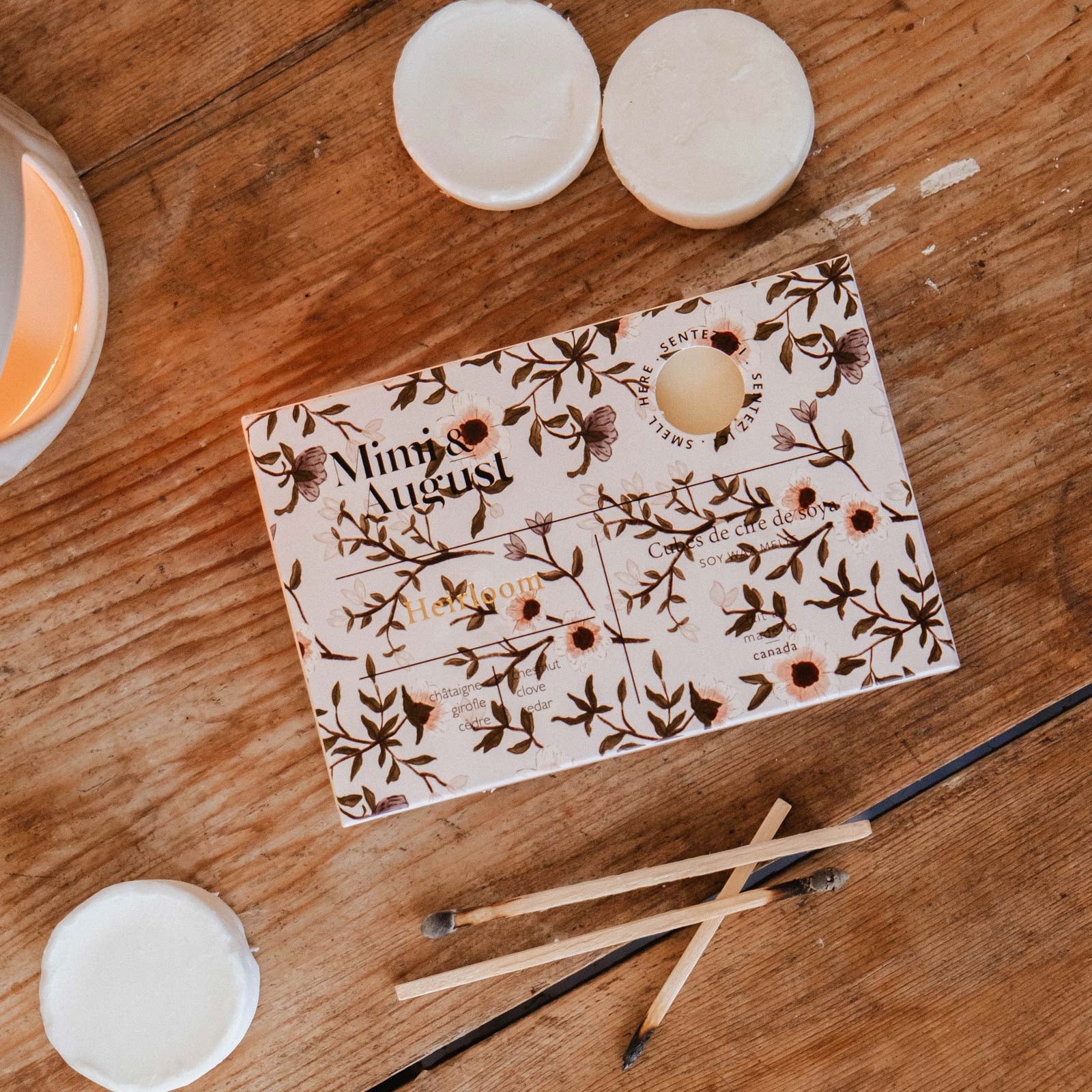 Les fondants de soja Heirloom marient la châtaigne grillée, le clou de girofle et le cèdre pour un parfum riche et boisé.